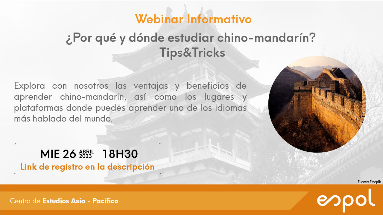 Webinar informativo sobre el aprendizaje del idioma chino-mandarín, ventajas, beneficios, consejos y trucos para aprender uno de los idiomas más hablados del mundo ¡Explora con nosotros dónde puedes estudiarlo en Ecuador!